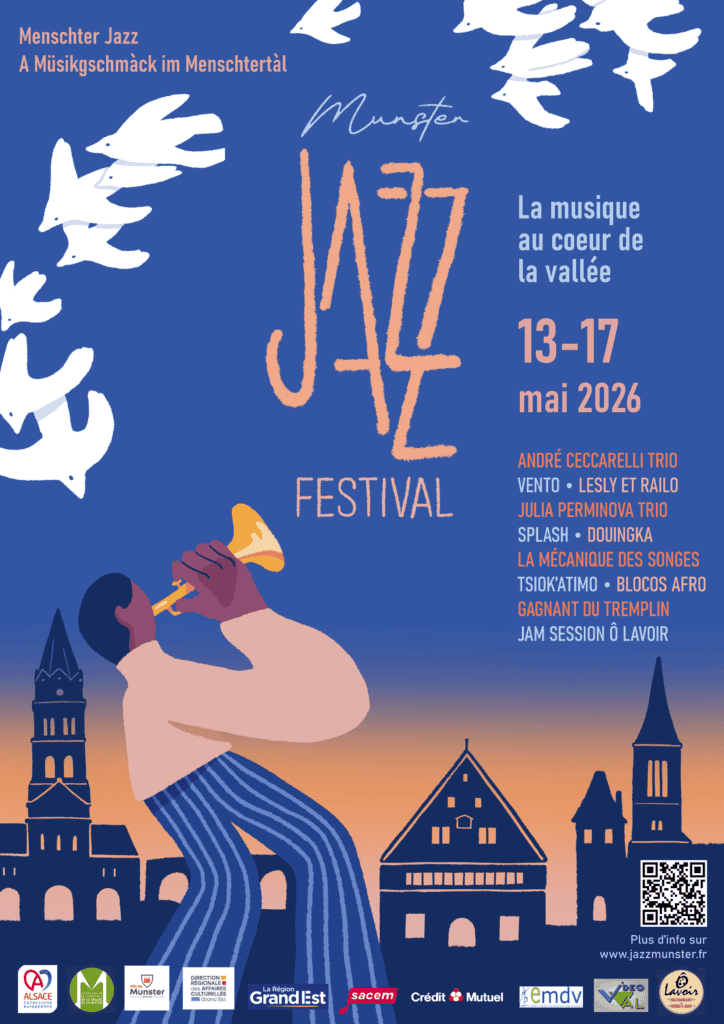 L’Association Jazz Festival Munster organise pour la 38ème édition de son Festival, son deuxième «Tremplin» destiné à la promotion des artistes émergents. Il est ouvert aux artistes de tous âges et basés sur la région Grand Est et alentours. La participation au tremplin est bénévole. Le groupe lauréat remporte la somme de 500 euros et s’engage à se produire en concert dans le In du festival Jazz à Munster, le 14 mai 2026.