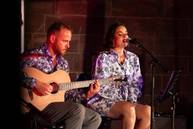 A la scène comme à la vie, Lesly & Railo partagent une complicité rare où l’amour se mêle à la musique, et la musique à l’amour. Ensemble, ils forment un duo guitare-voix empreint de sincérité, d’élégance et d’émotions. Ce sont deux artistes, deux styles, qui convergent vers un projet authentique. Dans un dialogue tout en finesse entre la prodigieuse guitare de Railo et la voix magnifique de Lesly, le duo voyage au gré de ses envies entre le jazz, la chanson française et les musiques du monde. Leur répertoire est composé de reprises et de compositions originales